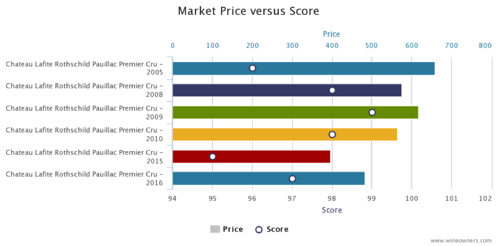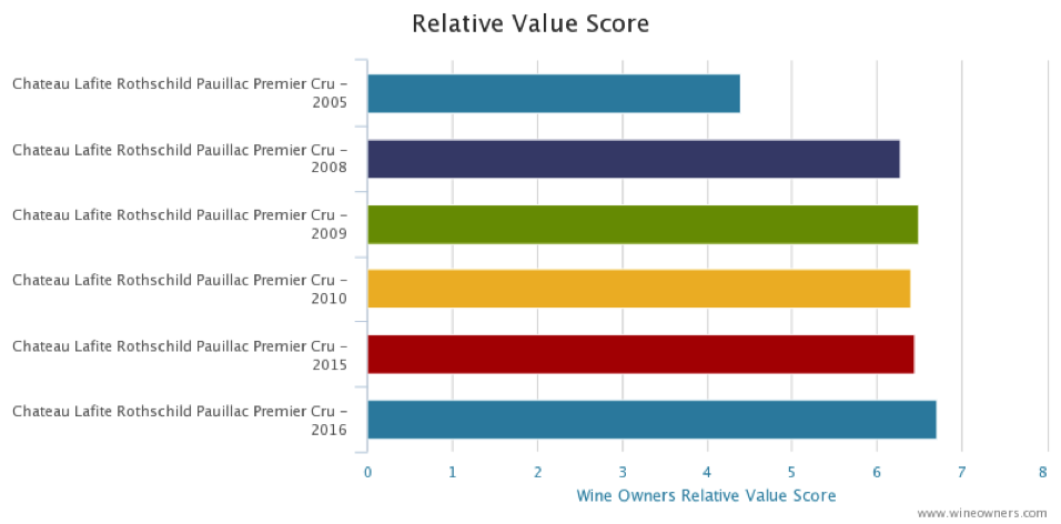 Below is our relative value analysis. Based on our estimations of what’s likely to happen in the next week, 2016 is showing a small advantage over prior vintages. If you consider that 2009 and 2010 are well off their lows, and that the absolute low of Lafite 2010 was £446 a bottle, it indicates that 2016 has very limited downside, and might well run up to around £600 a bottle over the next 3 years.