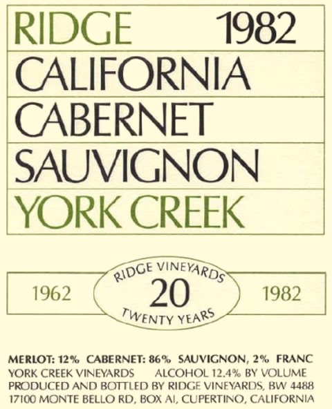 Ridge Vineyards York Creek Cabernet Sauvignon Spring Mountain District –