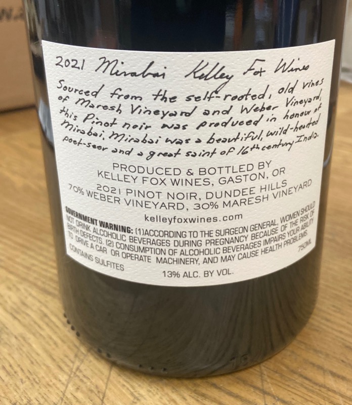 Kelley Fox Wines Mirabai Pinot Noir Dundee Hills